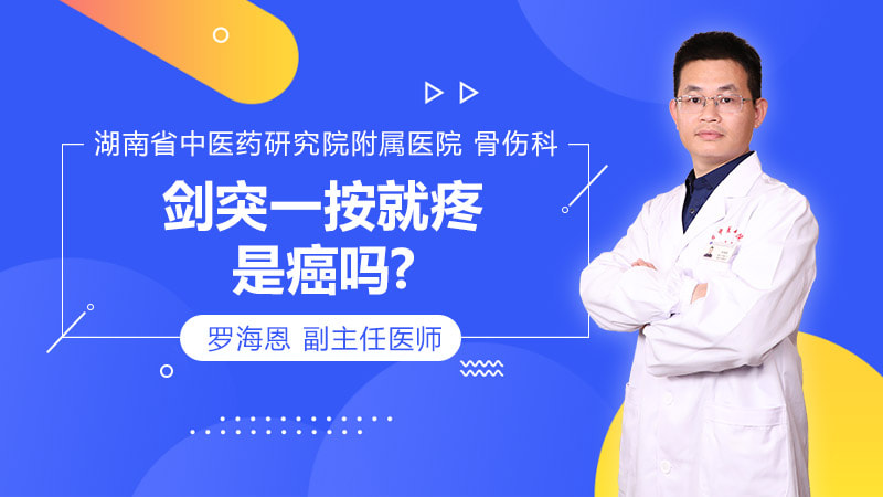 剑突出现按压痛,可能是由于剑突肿瘤,但是这种情况一般较少见。一般引起剑突疼,有外伤、剑突增生、心脏疾病、消化道疾病等因素。 外伤有可能导致局部的骨折,在没有受到外伤的情况下,长时间的一个姿势使局部受到压迫,也可以引起局部无菌性的炎症,导致疼痛。比如长时间的坐立弯腰,对着电脑手机伏案,趴着睡觉等等。