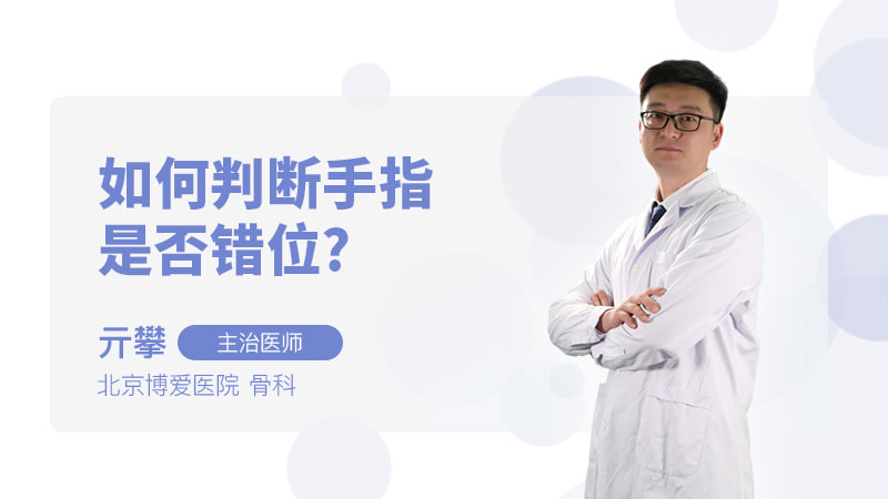 如何判断手指是否错位呢?一般我们有一些小方法,首先我们的手指是有这个指骨,还有我们的这个指间关节来构成的。那如何判断手指是否错位呢?首先我们可以对比两个手,对比两个手如果说形态都一样,这个屈伸活动都没有问题的话,像这种情况就不会有错位。那如果说我们这个关节处屈伸活动受限,有这种畸形,连续性受到影响,这种情况下就会错位。一般错位之后,首先第一是会有疼痛,第二是我们的关节活动受限,再一个可伴有这个肿胀的形成。当错位之后,首先第一步我们要进行这个手指关节的复位,一般是专业人士或者是去医院找相关的医生,进行帮我们复位。复完位之后,我们要早期地进行一个制动,制动的目的是让我们这个受伤的韧带、关节囊,进行一个修复,早期我们也可以用一些消炎镇痛药物、消肿的药物,甚至是冷敷,外用贴一些活血化瘀的一些膏药,帮助我们进行恢复。当摘除支具之后,要早期地进行这个关节的活动,利于我们一些恢复。