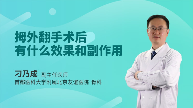 另外其实拇外翻的副作用还是很小的,因为这个手术的效果是解决疼痛,改变外形的,所以如果这个手术并没有出现感染,或者不愈合的情况下,那么副作用还是不大的。