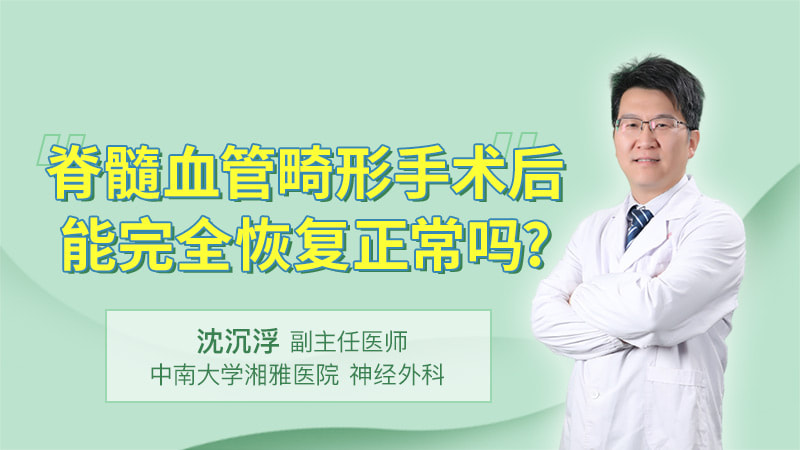 脊髓血管畸形手术术后是否能恢复正常,与术者术前的功能障碍有关。如果术前仅有轻微的神经功能障碍,一般手术后都能够取得良好的效果。但是畸形血管破裂出血,造成了明显的肢体瘫痪、大小便障碍,术后可能有一定程度的恢复,但是完全康复的可能性不大,会留下明显的神经功能障碍,需要长时间的康复训练。因此,对于这类病人,及早地就医诊断及治疗极为重要。