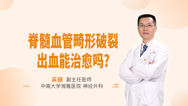 脊髓血管畸形破裂出血是该疾病的一种比较危险的状态,它可以表现为单纯的蛛网膜下腔出血,引起头痛、呕吐这些剧烈的反应,甚至严重的可以引起呼吸、心跳骤停。也可以表现是脊髓神经功能的快速受损的状态,比如出现剧烈的躯体疼痛、伴有或者不伴有二便排出的困难,乃至大小便的失禁。也可以出现肢体活动的障碍,如单侧肢体瘫痪,甚至出现双下肢的截瘫,更高位置的脊髓神经功能障碍,甚至可以出现四肢瘫痪。脊髓血管畸形破裂出血的治疗效果取决于治疗前的脊髓神经功能状态和出血量的大小,如果有出血量特别大的患者,可能根本就来不及送到医院就已经直接去世,出血量小的才有机会进行相应的治疗。