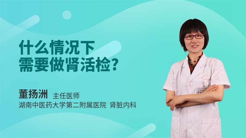 肾穿刺活检是有创检查在必要情况下,比如说从,明确病情,指导治疗,还有判断预后来讲的话,这个情况我们必须要做肾活检。那么在临床上面的情况下面哪些需要做肾活检,第一急性肾炎综合征,那肾功能的急剧下降这个是要做肾活检。第二可疑急进性肾小球肾炎,第三个的话无症状性的血尿伴蛋白尿,且持续性的蛋白尿大于1克每天。第四的话病人到底是继发性肾病引起的还是一个原发性肾病引起的,导致比如说蛋白尿血尿,在临床上通过临床难以确诊,这个时候我们必须要做一个肾活检。第五的话,考虑是遗传性的肾小球疾患,比如说这个小孩子一来就发现是视力不太好听力下降,然后又有肾功能损伤的情况下面,这个时候的话你考虑可能跟家族有关,这个时候一个做一个肾活检。第六的话一个患者接触来了之后就说出现一个明显的这个急性肾损伤,但是又没有明确一个病因。或者是这个,急性损伤已经确诊了,但是肾功能恢复的比较迟缓的情况下面的话,我们也需要做一个肾活检。另外一个的话就说这个患者通过一个肾移植,最后发现这个移植肾又出现了一个疾病的。比如短期内这个移植肾出现的肾功能下降,原发病再次导致了移植肾的发病,或者是出现了这个移植肾之后出现的一个,明显的排异反应,在这种情况下的话,我们需要给患者做一个肾活检。