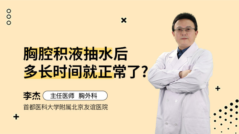 胸腔积液抽水后多长时间能恢复正常,关键要看胸水的性质,像一般的炎性胸腔积液,往往抗感染后,如果出水量比较大,一般抽个一两次大概就基本能正常了,只要抗感染有效,一般都很快就正常了。