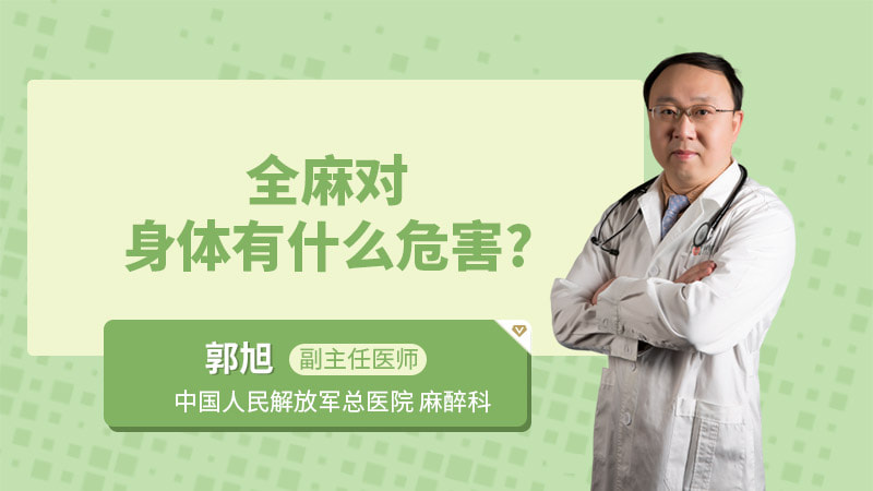 全身麻醉对身体没有任何的危害,甚至我认为全身麻醉是最安全的一种麻醉方式。 全身麻醉是指镇静药、镇痛药、肌松药作用于大脑的神经中枢,使神经中枢处于一种抑制状态,这一种抑制状态通过药物的代谢是完全可逆的。全麻术后患者可能短期内会有一些恶心、呕吐,老年人也有可能发生谵妄这种短期的不适,这种不适可能在术后的2到4个小时就会恢复。如果发生谵妄,恢复的时间可能会长一些。但是这并不能说是全麻的一种危害,它的发生机制并不明确,所以说全身麻醉术后并没有任何的危害。