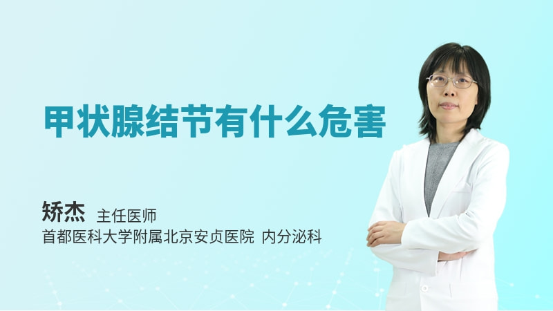 甲状腺结节是甲状腺B超的影像学异常肿块,它的危害一是功能的异常,如果合并有甲亢或者甲减,会造成一系列的临床代谢异常,导致身体的损害,严重的时候会影响生命健康。另外结节有恶变的风险,如果出现恶性的肿瘤结节的时候,也会影响人的生命。