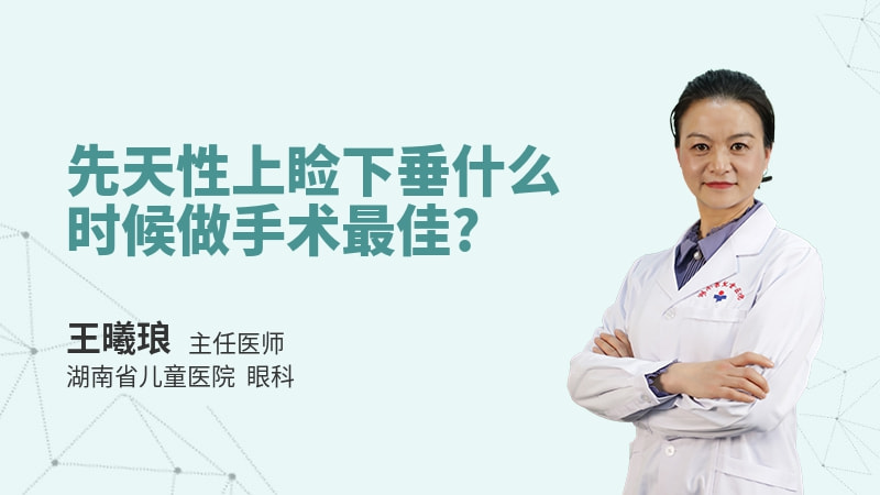总之对于先天性上睑下垂,要根据上睑下垂的程度,提上睑肌的肌力,屈光情况,孩子的配合程度等等,来综合决定手术时机以及手术的方法。而对于有一些先天性的上睑下垂,伴有眼部或者其他部位的异常,比如说有小睑裂综合征,最好分期进行手术,首先做内眦和外眦的开大、成形,半年到一年以后再做上睑下垂矫正的手术。